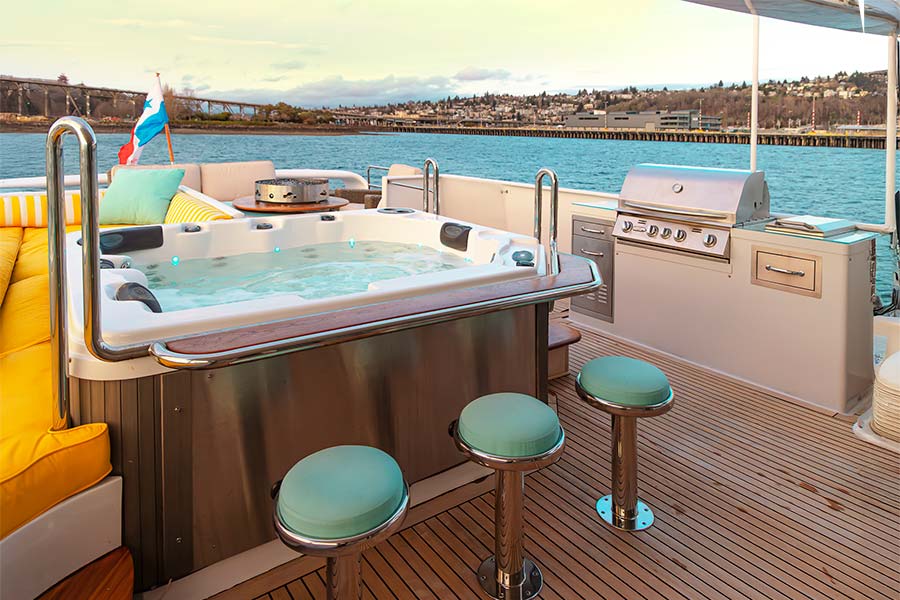 The solarium, equipped with a jacuzzi, BBQ and fire pit area, is an open space dedicated to contemplation and relaxation.